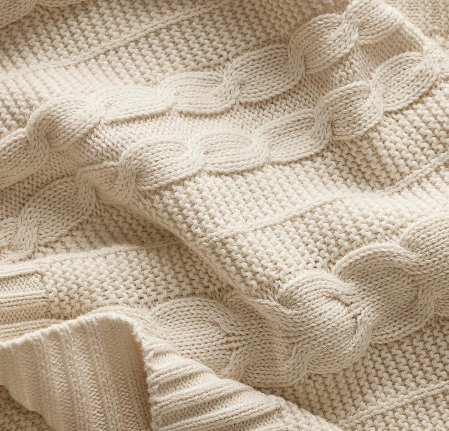 ULTRA SOFT FEEL: Luxuriously crafted using fine-gauge yarn for an irresistible hand-feel, this lightweight cable knit blanket is exceptionally soft, and balances a hint of warmth with breathability. It starts with the highest quality yarns sourced from the finest long-staple 100% organic cotton on earth