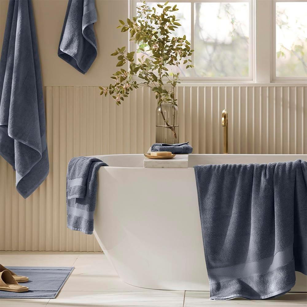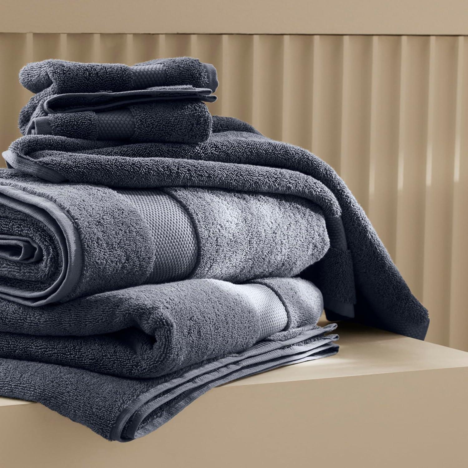 BOLL & BRANCH Plush Bath Towel Set – Holly – 6 Piece – Includes 2 Bath Towels, 2 Hand Towels & 2 Washcloths – 100% Organic Cotton – Ultra Soft & Luxurious – Quick Absorbing(Mineral)
