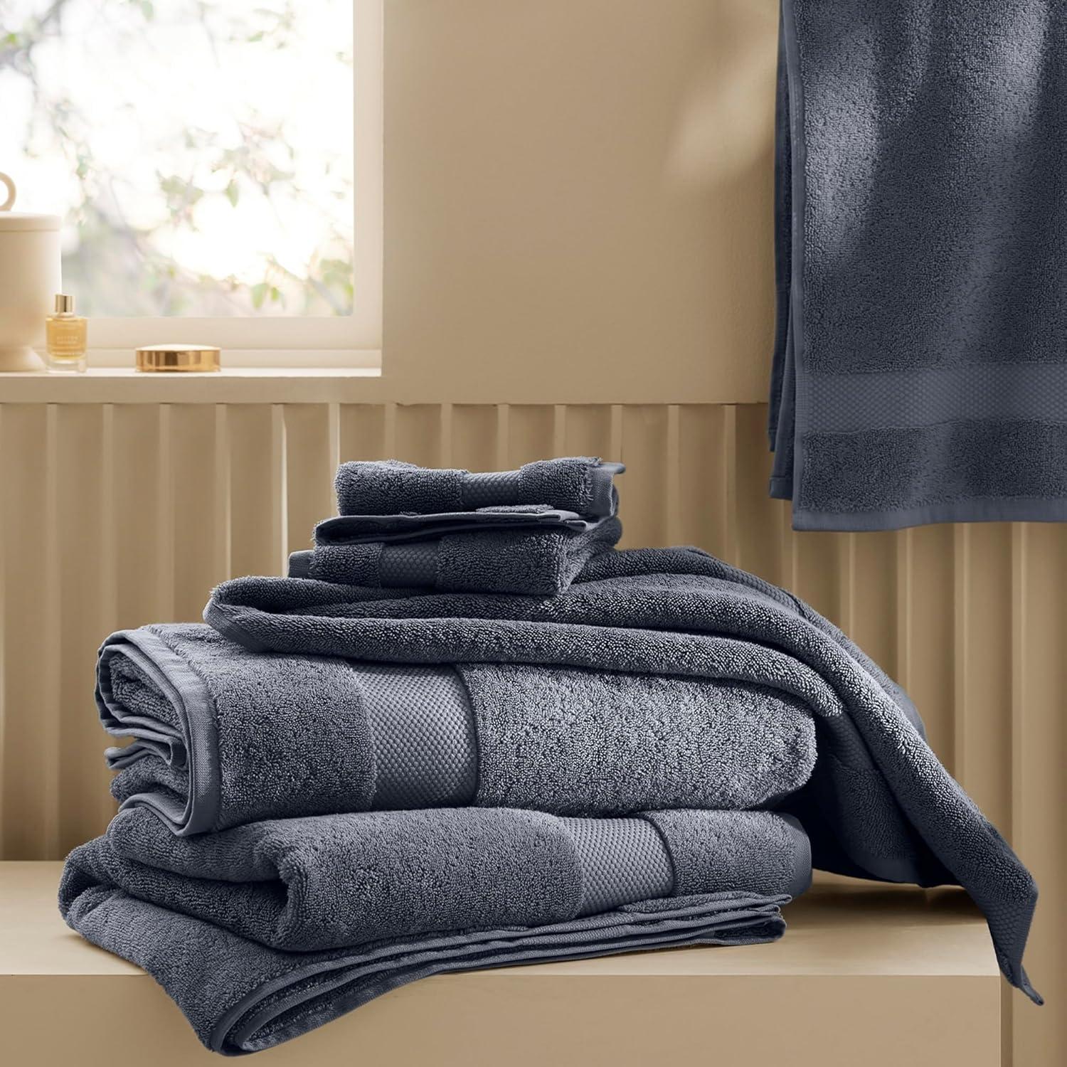 COMPLETE LUXURY SET: Includes 2 Bath Towels (30” x 58”), 2 Hand Towels (20” x 30”), and 2 Washcloths (13” x 13”) for the ultimate bath experience. Available in elegant shades of White, Shore, Mineral, and Stone to complement any space