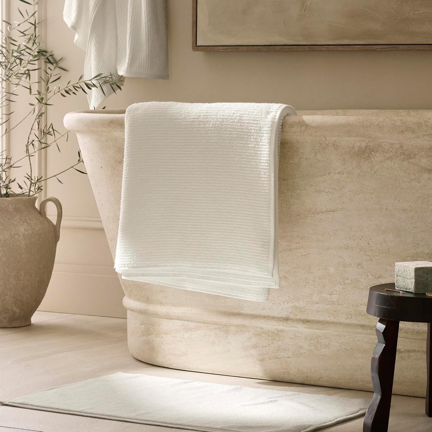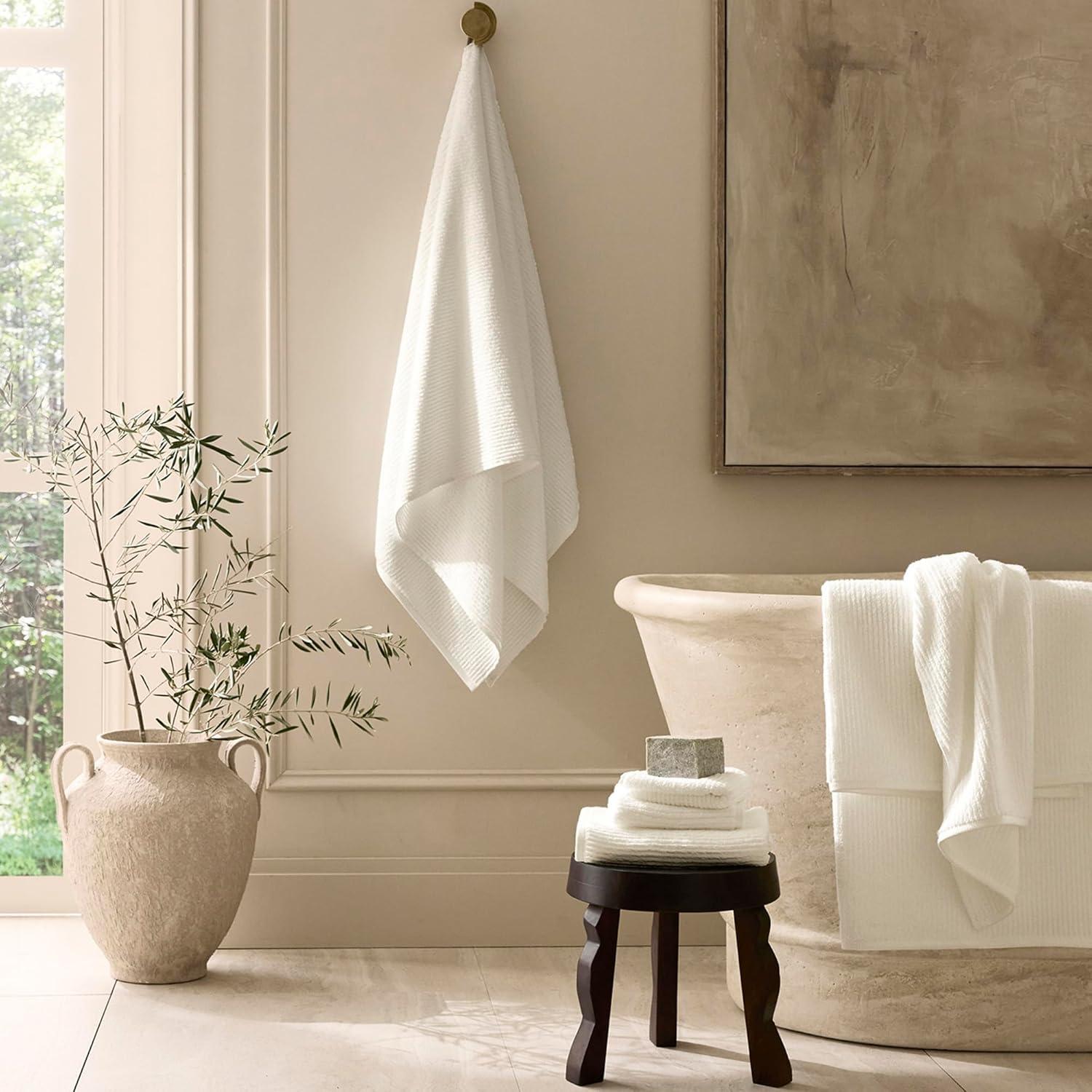 COMPLETE LUXURY SET: Includes 2 Bath Towels (30” x 58”), 2 Hand Towels (20” x 30”), and 2 Washcloths (13” x 13”) for the ultimate bath experience. Available in elegant shades of White, Shore, Mineral, and Stone to complement any space