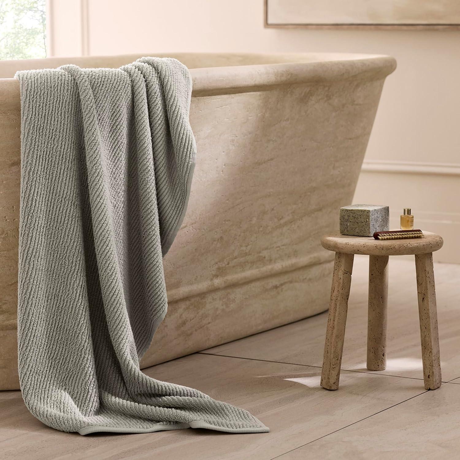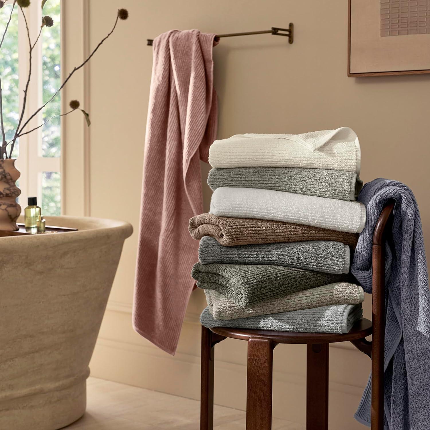 ULTRA-SOFT RIBBED WEAVE: This plush, midweight texture offers a modern take on spa-inspired comfort. The channeled design promotes excellent airflow, creating a quick-drying design for your daily ritual
