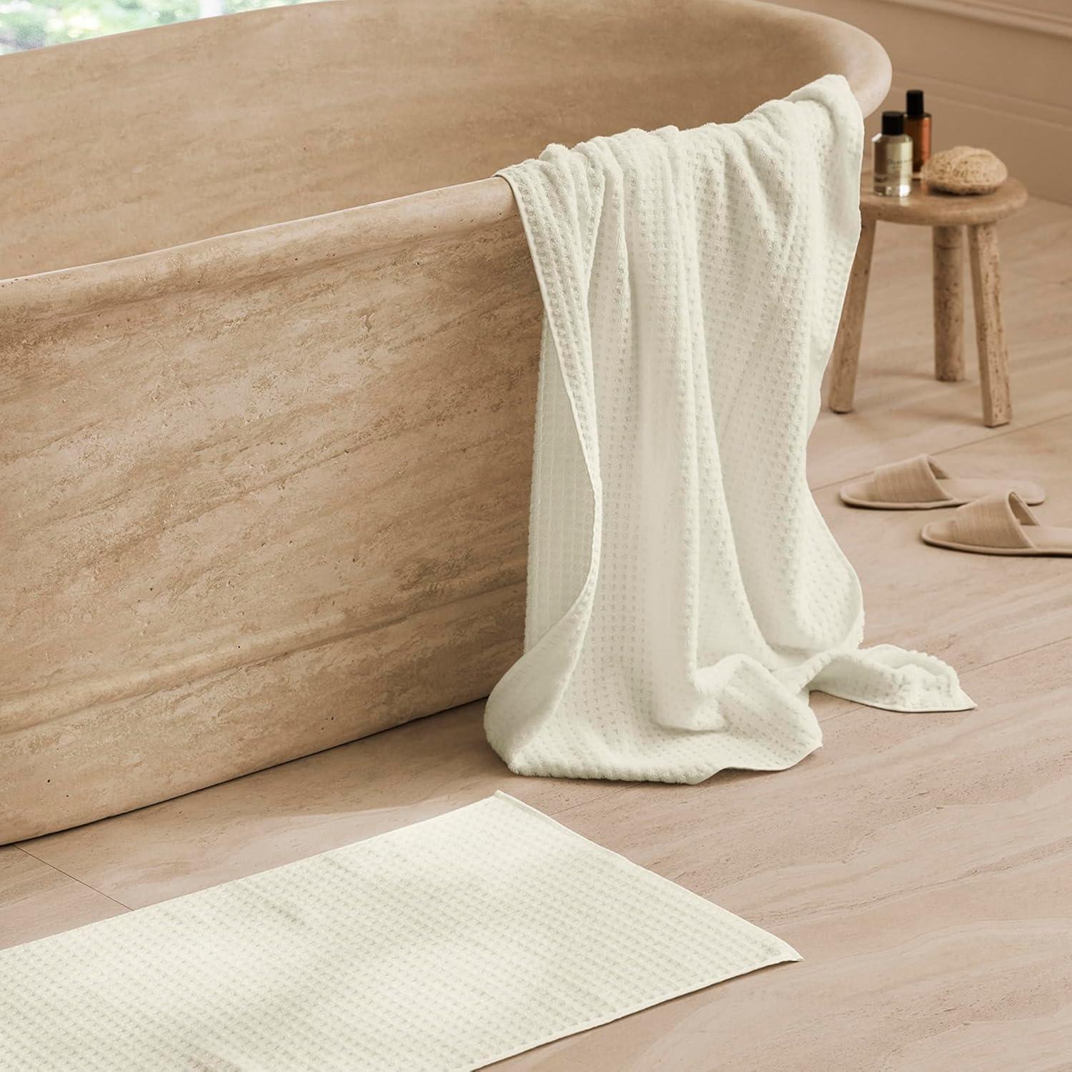BOLL & BRANCH Turkish Waffle Bath Mat – White – 100% Organic Turkish Cotton – Soft Absorbent Quick Dry Luxury Bathroom Mat with Waffle Weave Texture – Spa Inspired Comfort(Cream)