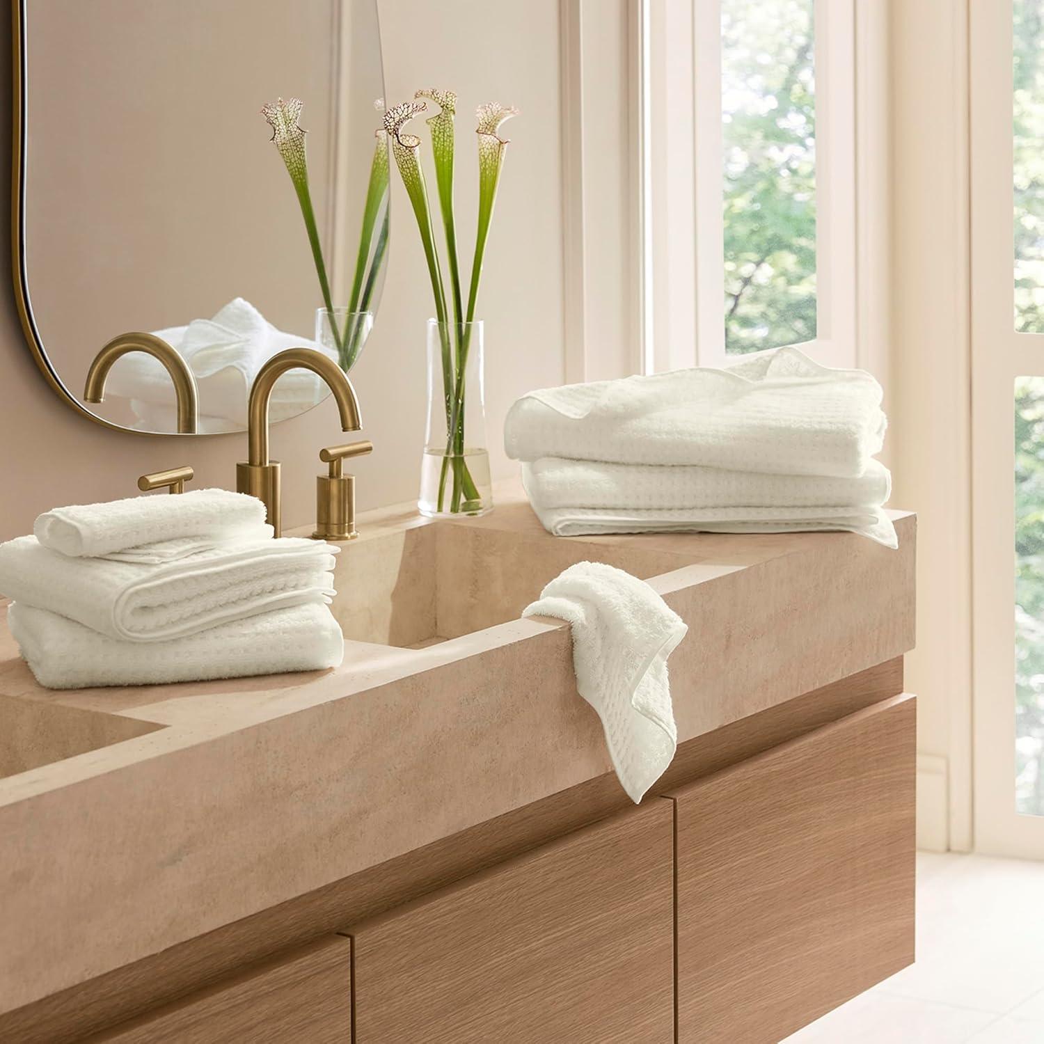 COMPLETE LUXURY SET: Includes 2 Bath Sheets (36” x 70”), 2 Hand Towels (20” x 30”), and 2 Washcloths (13” x 13”) for the ultimate bath experience. Available in elegant shades of White, Shore, Mineral, and Stone to complement any space