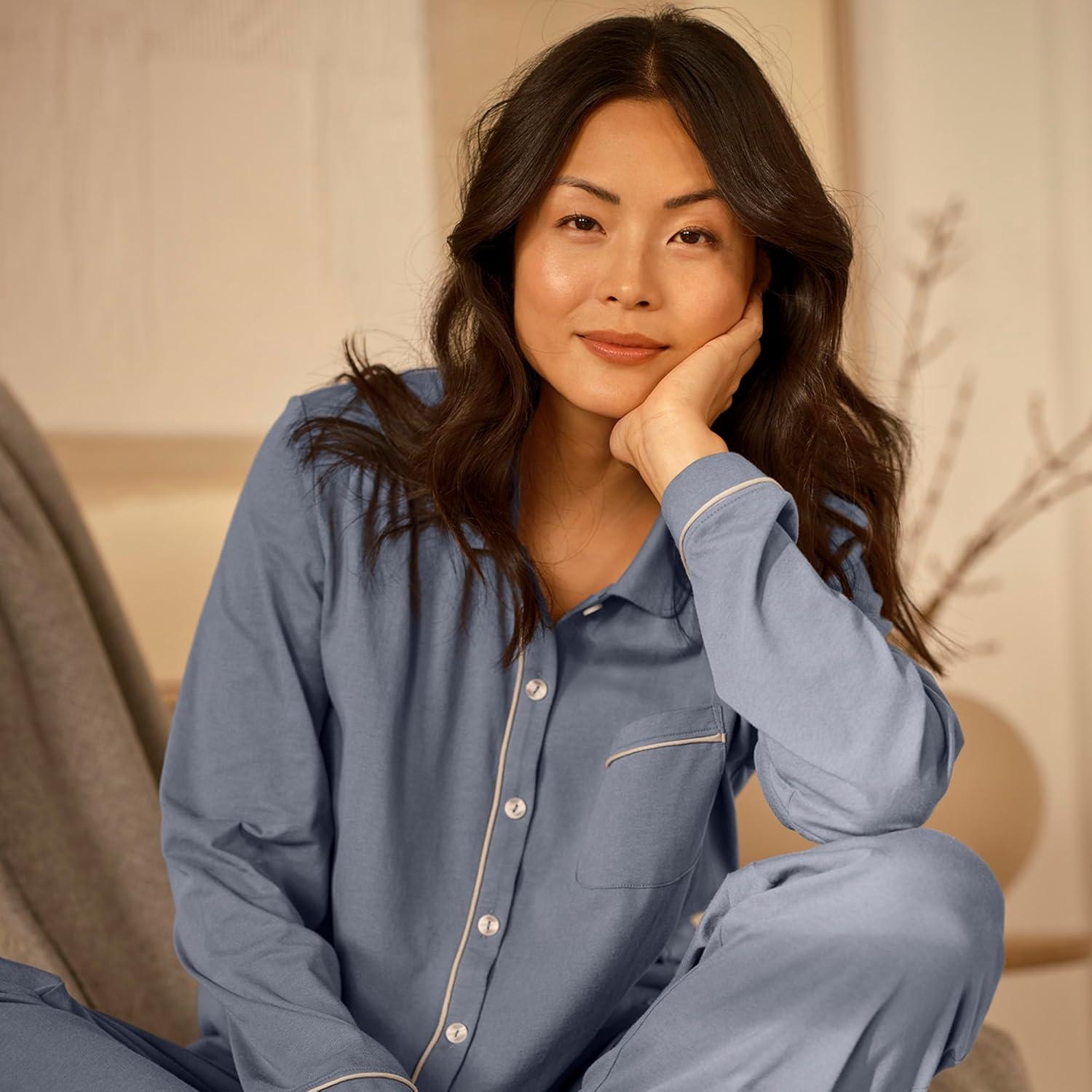 BOLL & BRANCH Women’s Soft Knit Long Sleeve & Pants Pajama Set(Mineral)