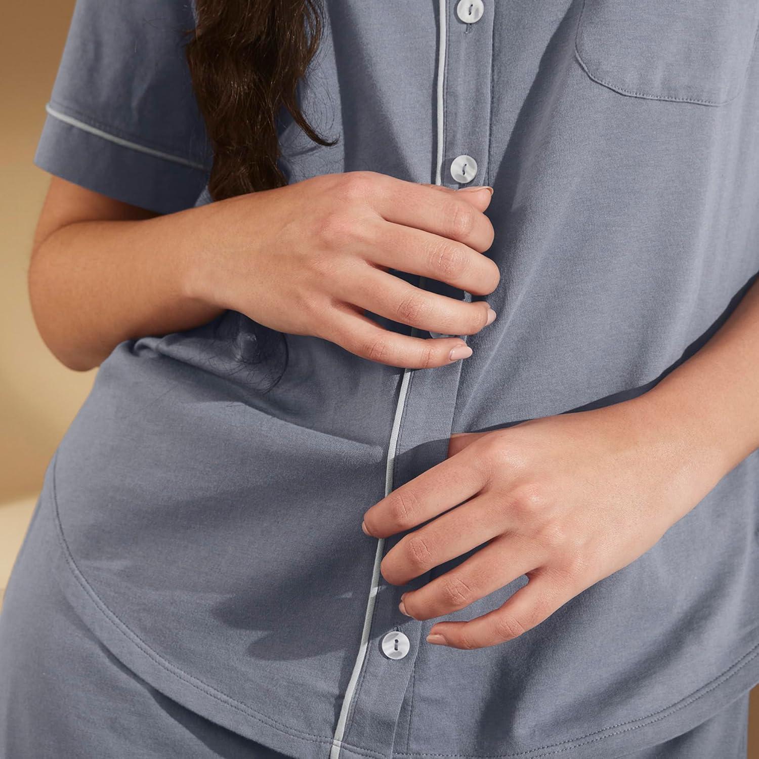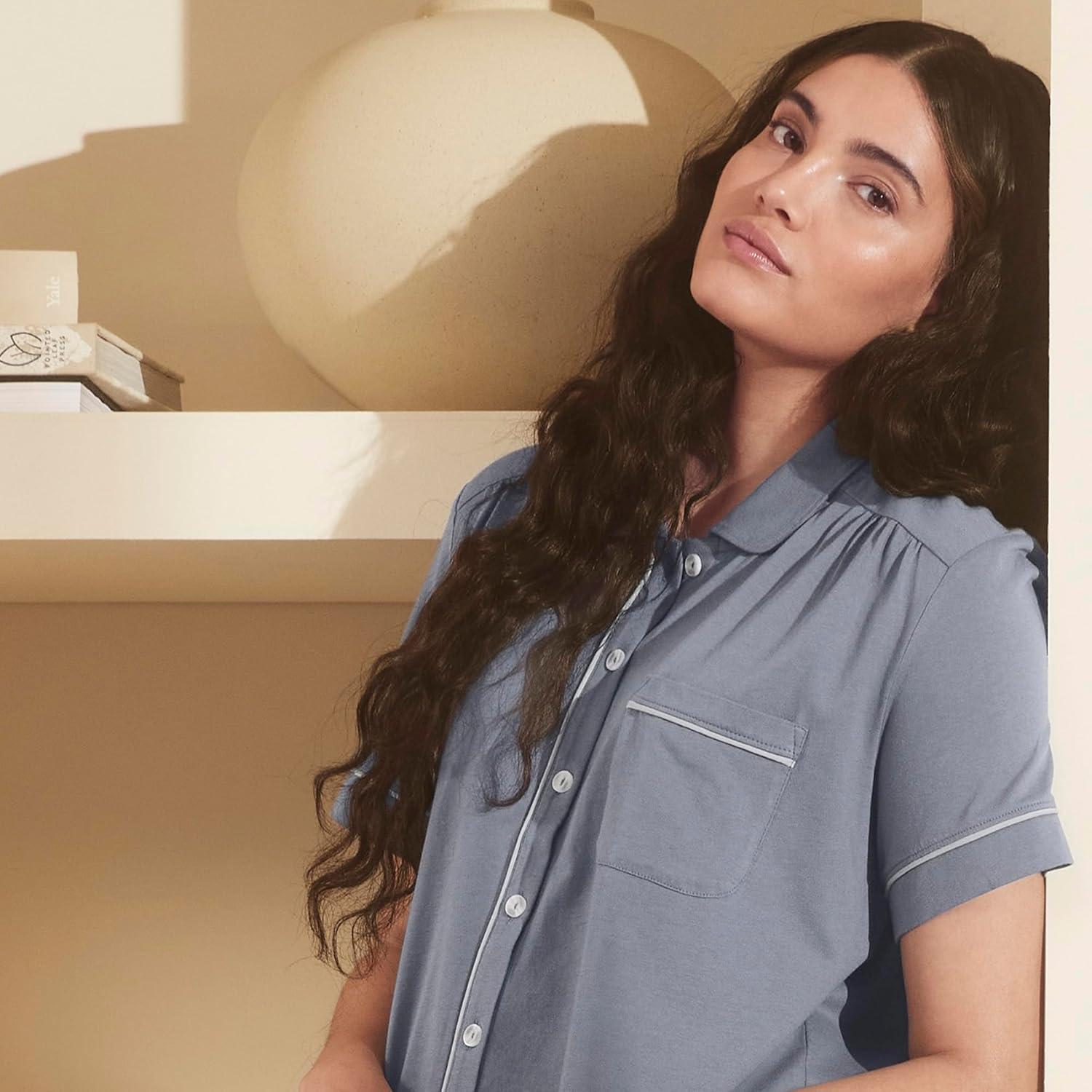 BOLL & BRANCH Women’s Soft Knit Short Sleeve & Shorts Pajama Set(Mineral)